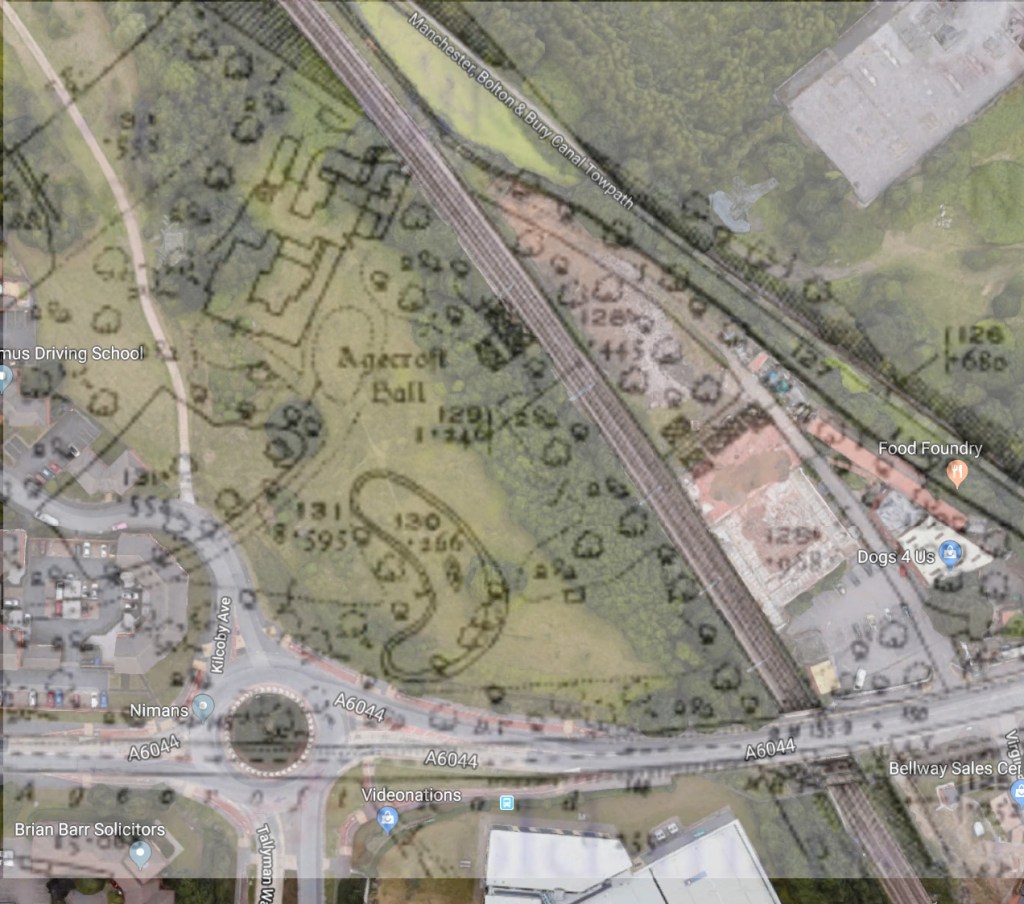 The loss of Agecroft Hall provoked anger in England, and was even the subject of debate in the House of Commons. Below is a superimposed location of the old house onto a current map of the estate: